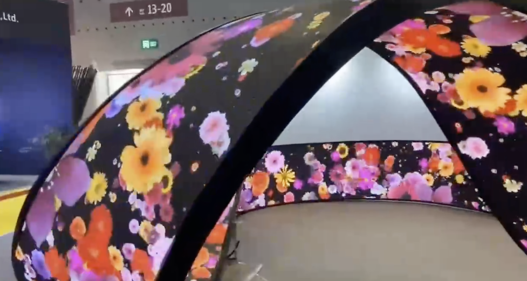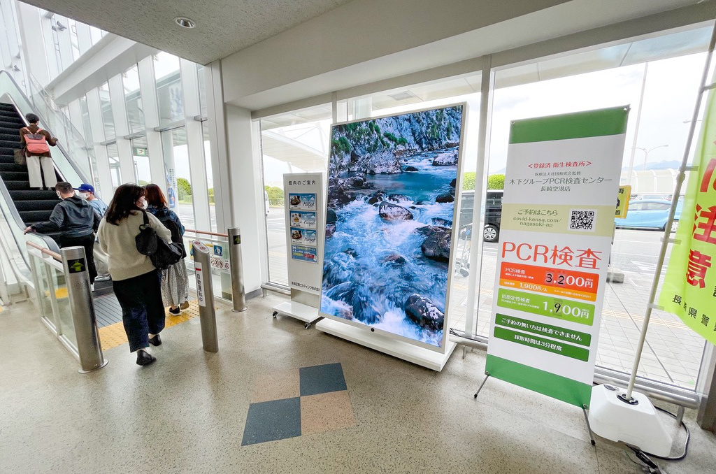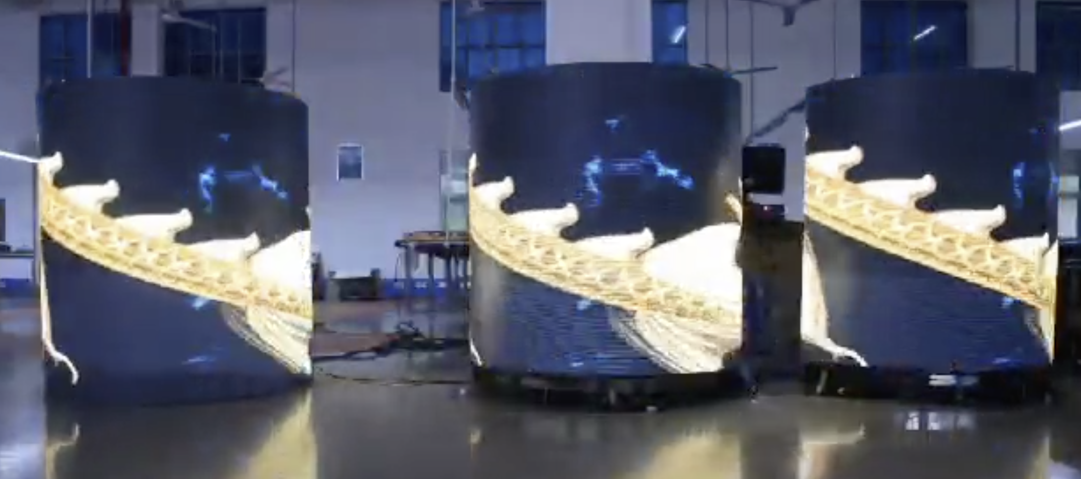 写真は製造中のテスト段階のものです。W7040mm×1920mm大画面になるほど電力を要します。写真の大きさで電気代は約3万円/月ほどです。標準型のパネルの場合、5万円/月ほどかかりますので、ランニングコストは年間24万円も違ってきます。
