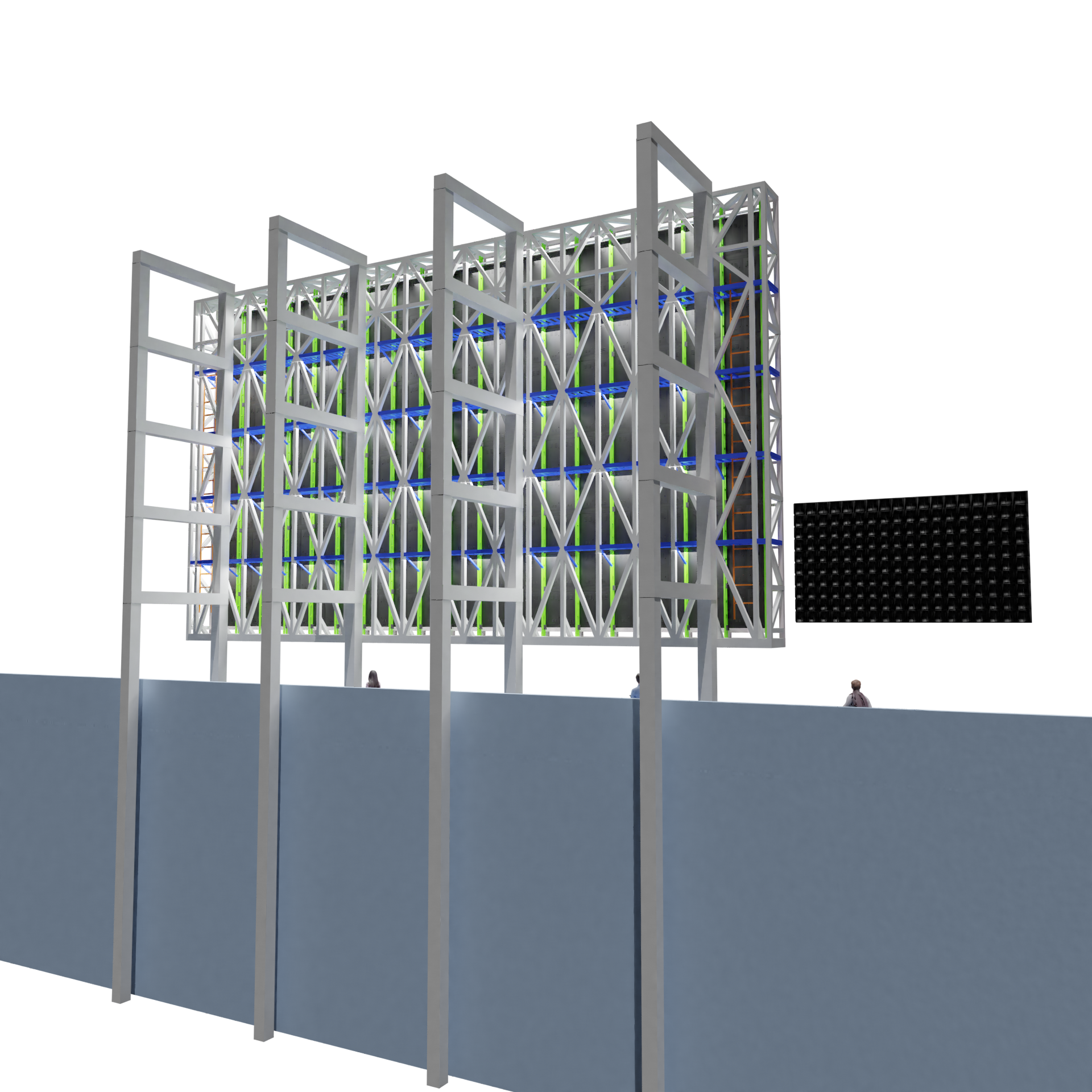 日本国内において、LEDビジョンはほぼ中国ブランドです。その中国の中でも省電力タイプを製造出来るメーカーは限られており、日本国内ではほぼ出回っておりません。消費電力は従来の約60%で、配線の流れが全く事なるシステム構成です。また、標準型と比べ視認性が大幅にアップしたBlackLEDも登場し、日中の視認性が大幅にアップしたものも出て来ています。デジタルクラフターは多くの選択肢から設置環境に最適な構成を作成し、技能にすぐれた中国のメーカーへその設計図を渡し、委託製造しています。また、設置についても修理についても全て対応していますので、設置料金が法外に高くなることもなく、性能の良い製品を適正価格でご提供できます。設置イメージを合成写真で確認して頂き、また設置場所に合わせた架台の設計を行う為、事前にどの様な状態になるのかを確認して頂く事が可能です。大規模なものは左の写真の様に設計したものをパースとして見て頂く事が可能です。最新のLEDビジョンの事は、ぜひデジタルクラフターにおまかせください。