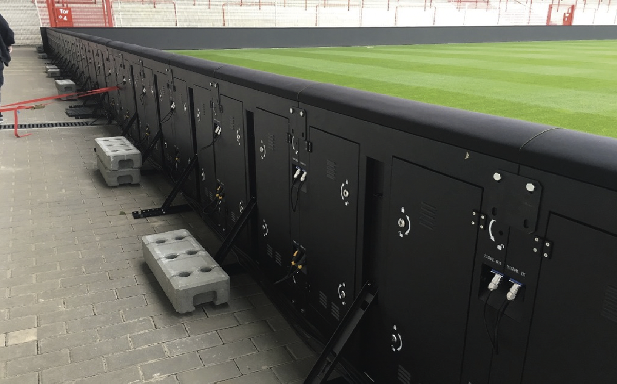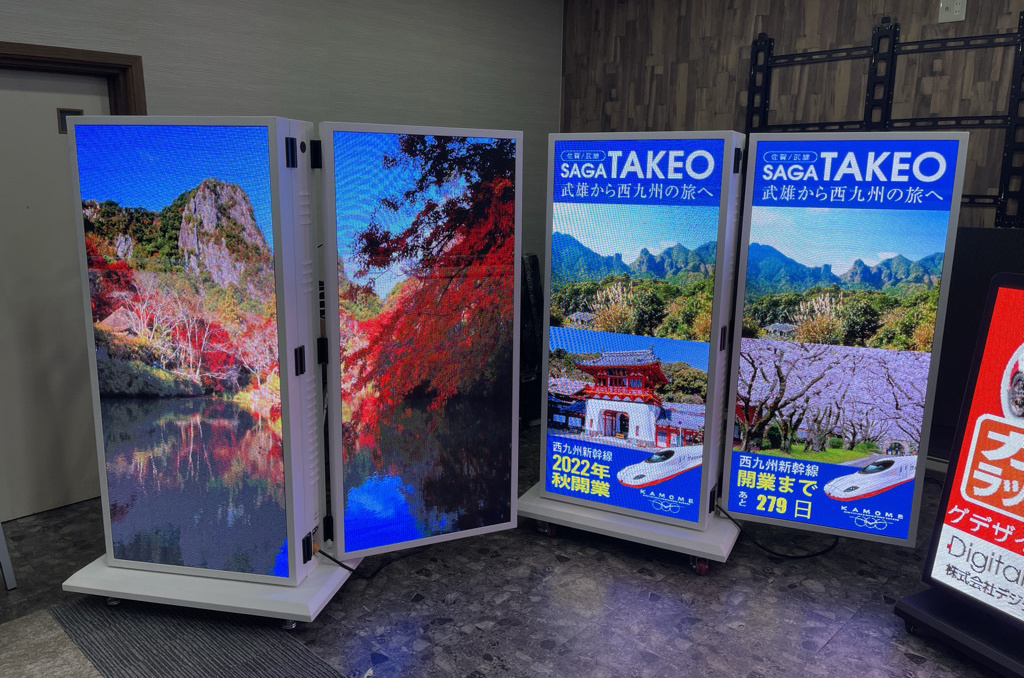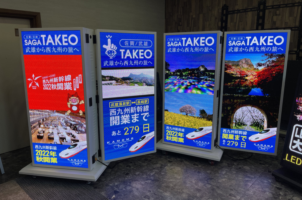 P2.5のBlackLEDを使用し、従来の標準型パネルと比べ視認性が大幅にアップしています。オリジナル設計の両面型(C-2)をベースに大型スピーカーを搭載しています。新幹線プラットホームに設置されます。