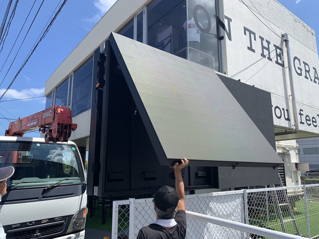 アドトラックへのLEDビジョンの組込です。3Dに対応したLEDビジョンです。