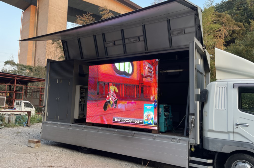 通常のトラックへLEDビジョンを組みこみます。発電機の設置から排気管の延長、お客様のご要望に合わせて適正なLEDビジョンをご提案致します。