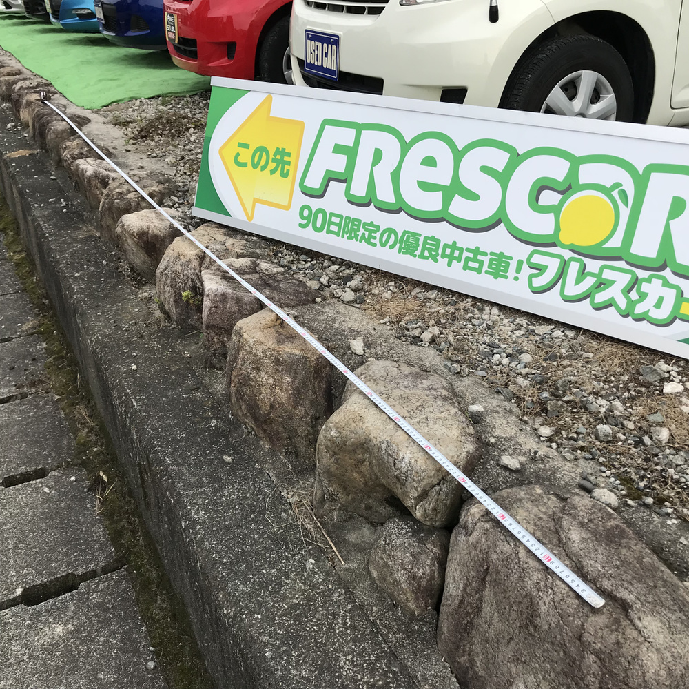 第二駐車場の車の前に看板を並べ道路から目立つ様にしました。