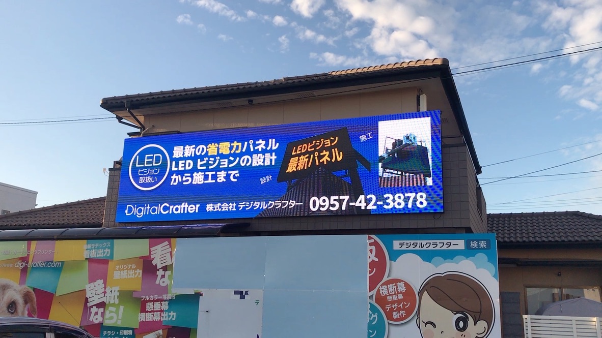 大村市空港通りに「デジビジョン空港通り」を設置しました。W7,040mm × H1,920mmの横長タイプです。