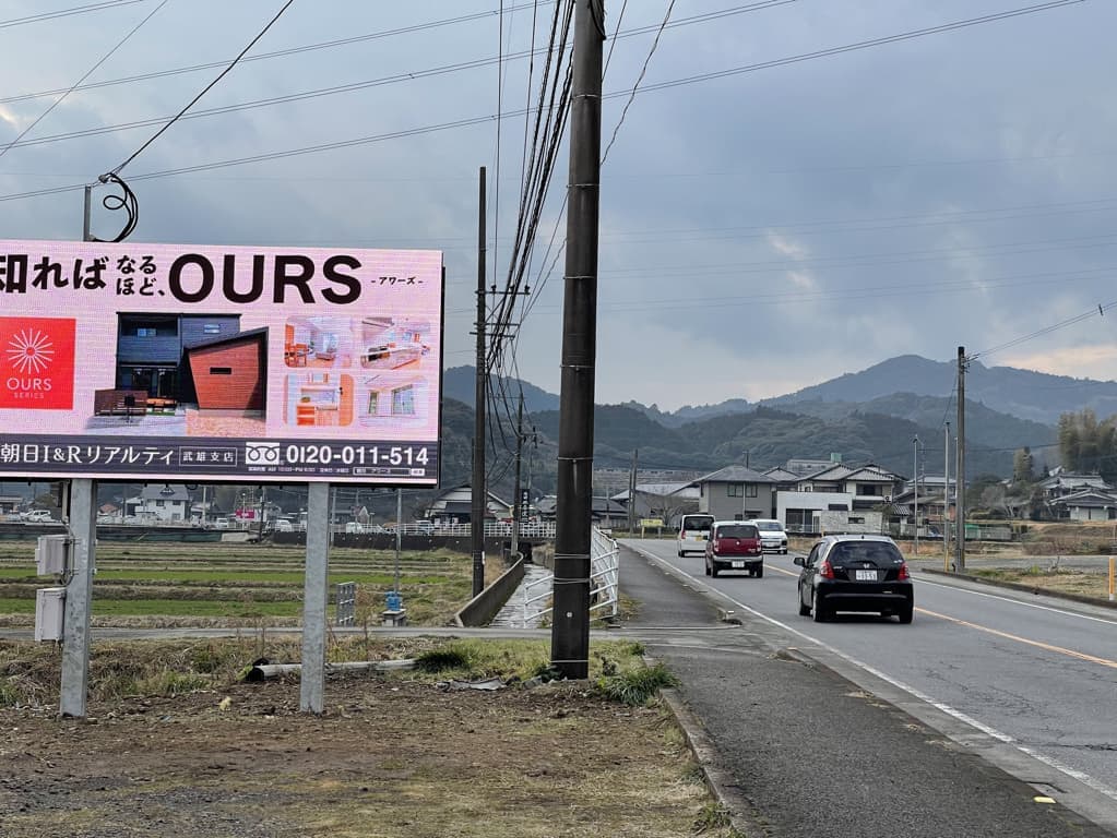 嬉野から武雄市へ向かう東川登の34号線沿いのLEDビジョンです。設置は2022年2月完了予定で、ただ今広告募集中です。両面のLEDビジョンになる為、上りと下りの両方への広告展開が可能です。