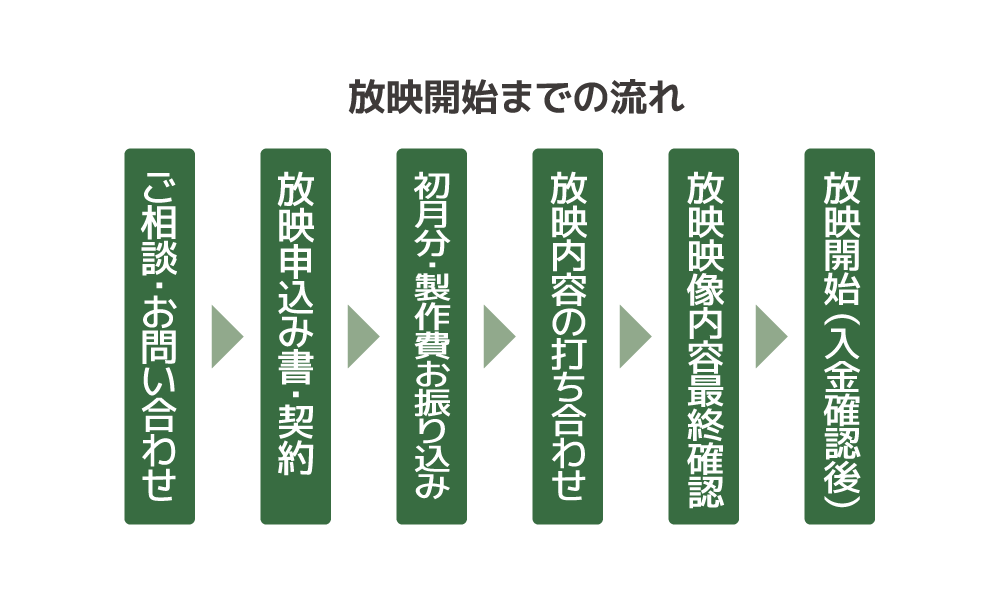 | 放映素材の入稿は、放映開始日の5日前迄となります。 |