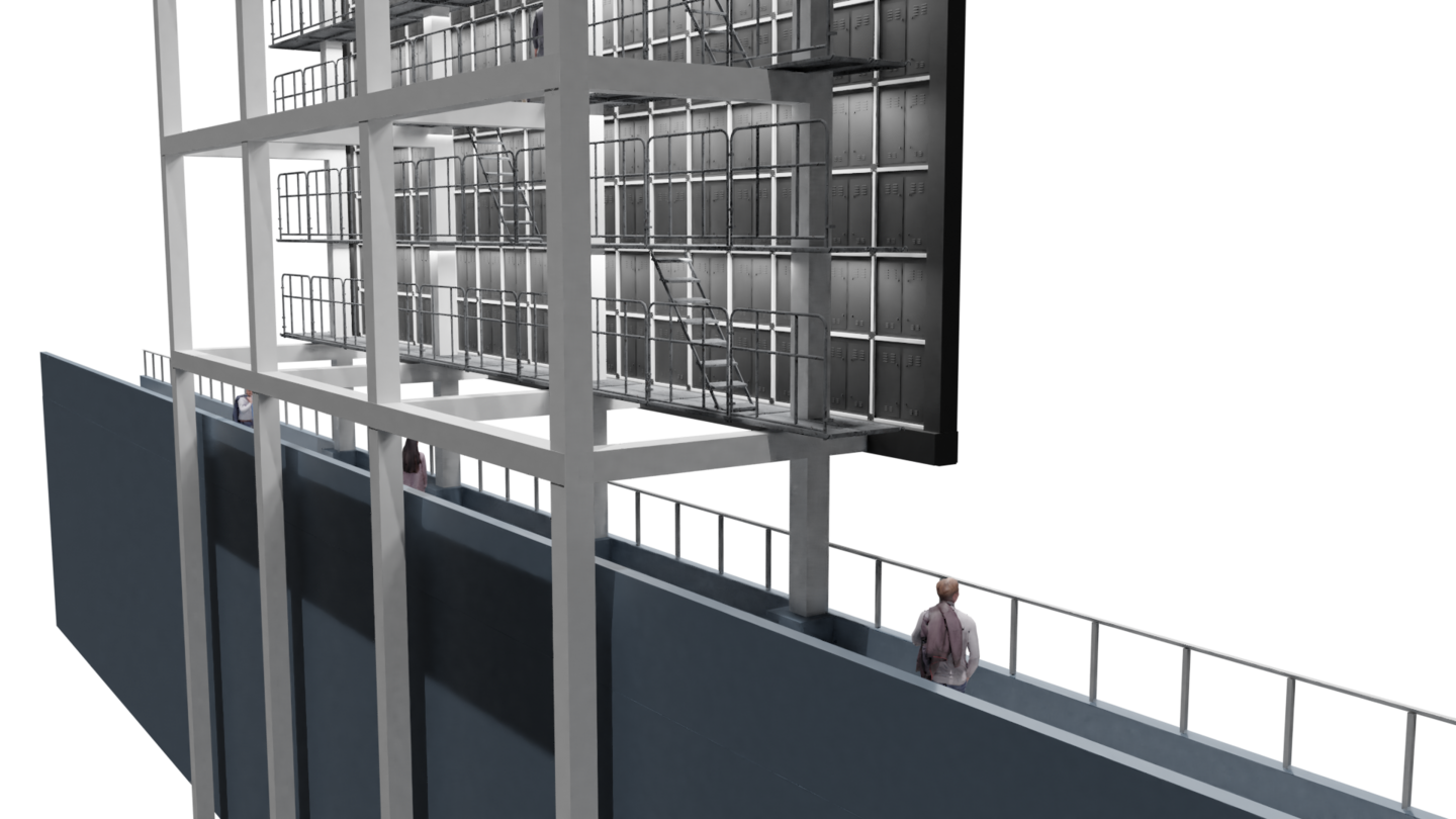 こちらもW960×H960mmのキャビネットです。鉄製の筐体かアルミ製の筐体かを選択できますので、海などの塩害を考慮した設置が可能です。厚さも120mmと比較的薄く、リアメンテナンス専用製品です。解像度はP2.5からとなっており、見た目もすっきりとした設置が可能です。