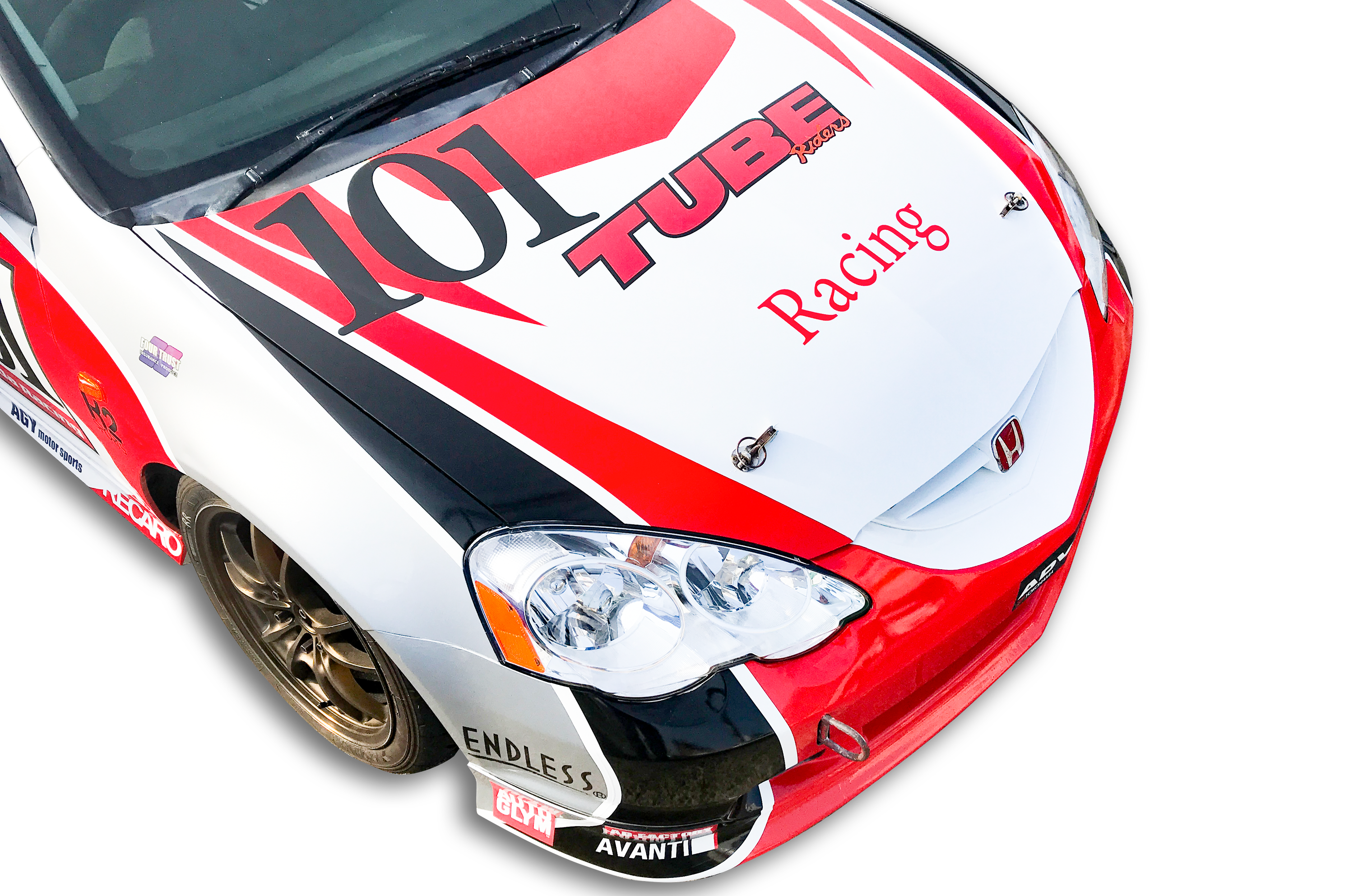 複雑なラインと数々のスポンサーシールを復元しました。3Mの専用メディアに加え、ラテックス印刷でスポンサーシールを復元、また、ヘッドライトの交換など、元車関係の従事者がいますので、車の部位を念頭に置いた施工が可能です。デザインから印刷、施工まで全てデジタルクラフターで行えます。