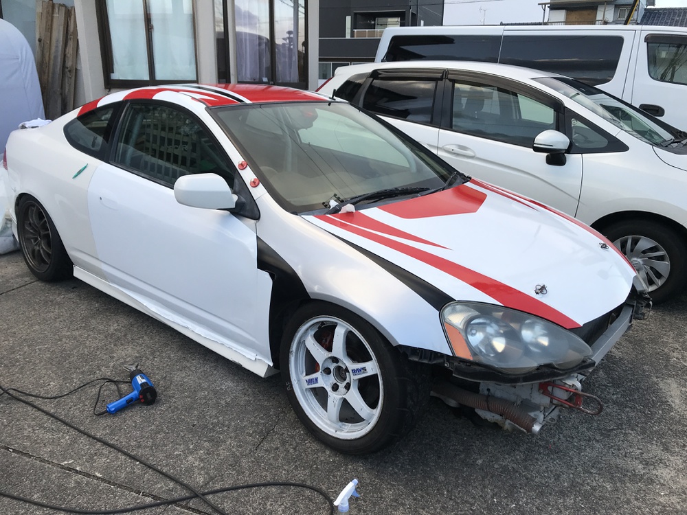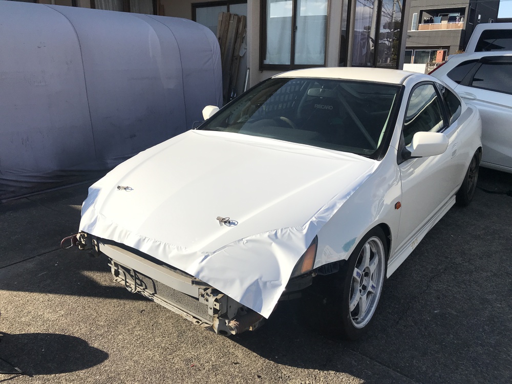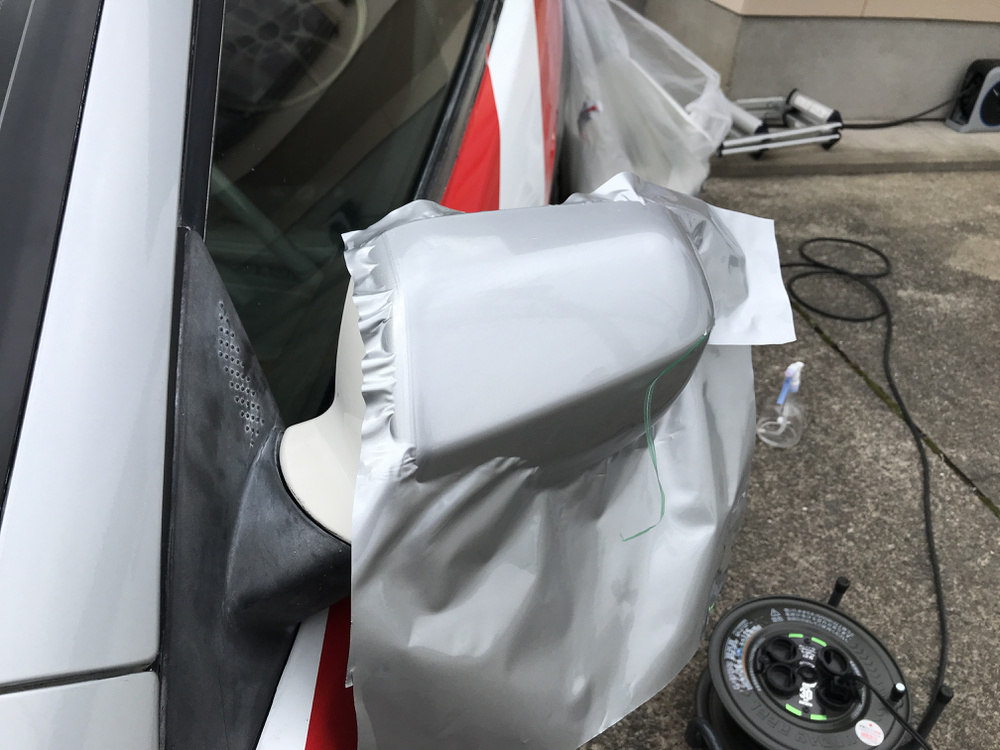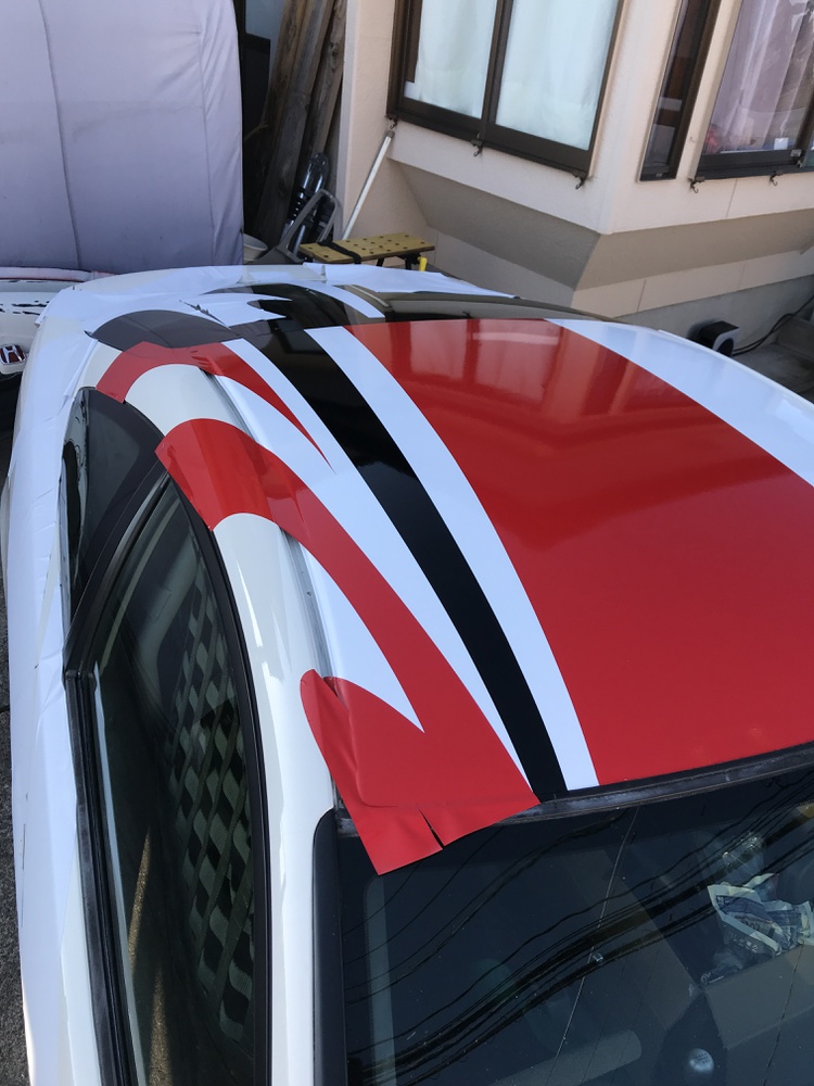 ラッピングのベースとなる白のラッピングフィルムを施工