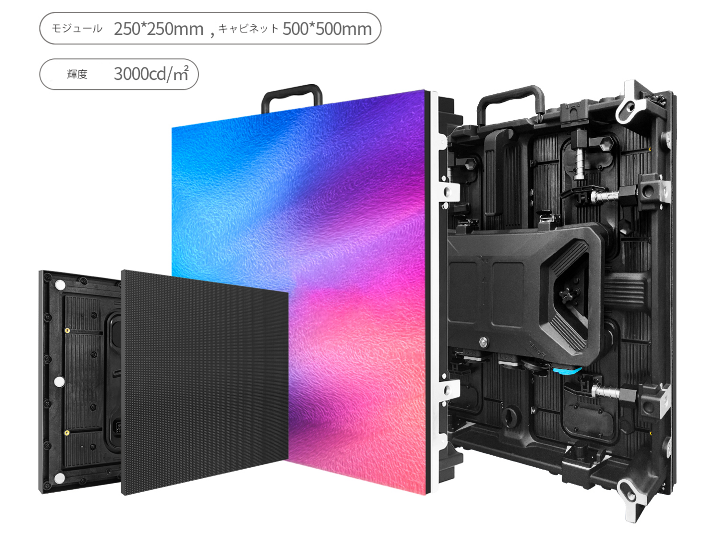当社ではいち早くこれらの製品を試用し、屋外用のGOB P2.6やCOB P1.9は当社内にて実際に比べていただくことが出来ます。現在の対応キャビネット寸法は320mmと500mmのサイズです。ぜひ、最新のLEDビジョンを当社ラボにてご確認ください。