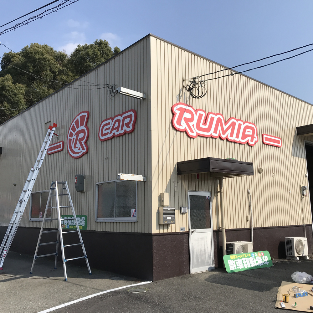 ビルに立体文字の看板とバータイプの照明を設置。