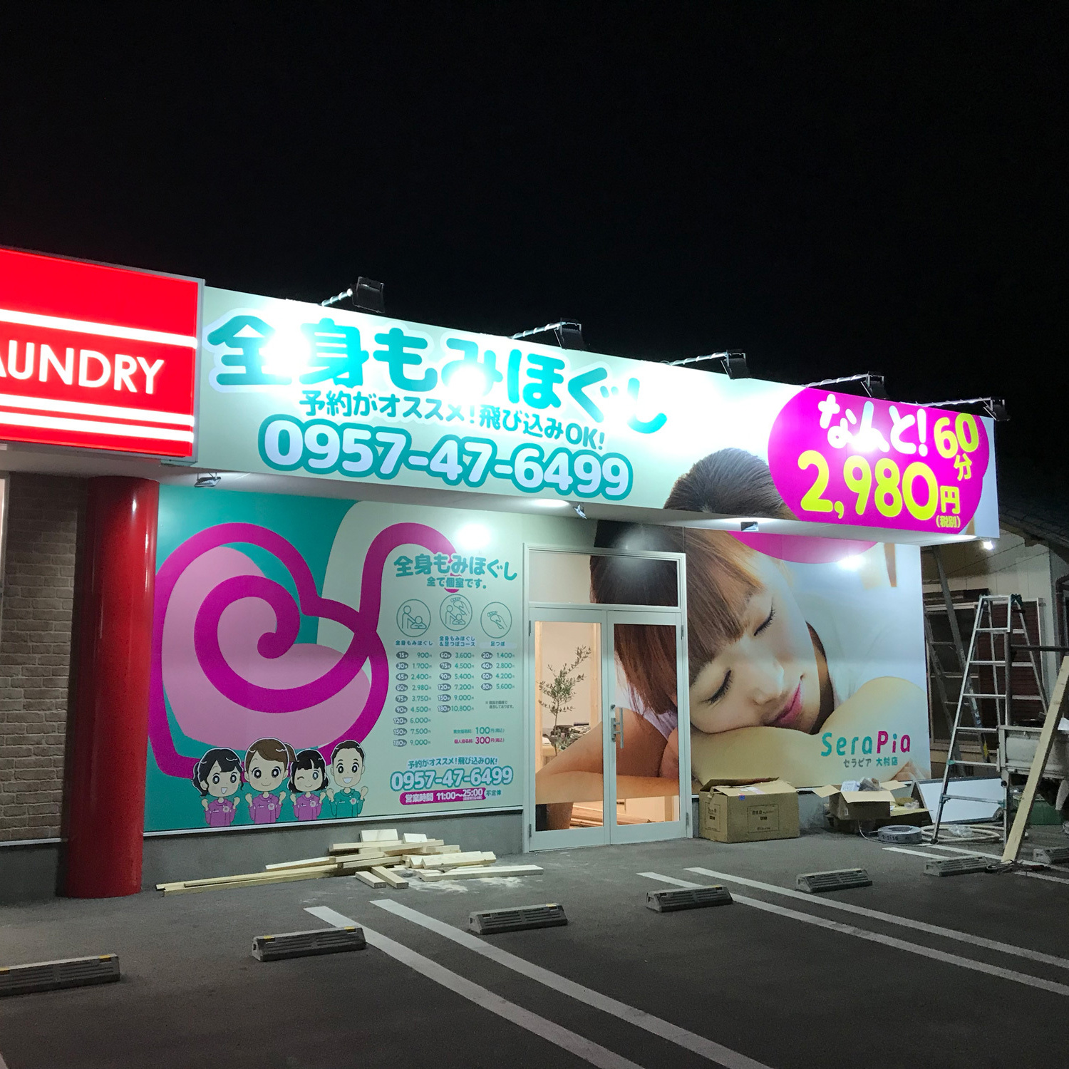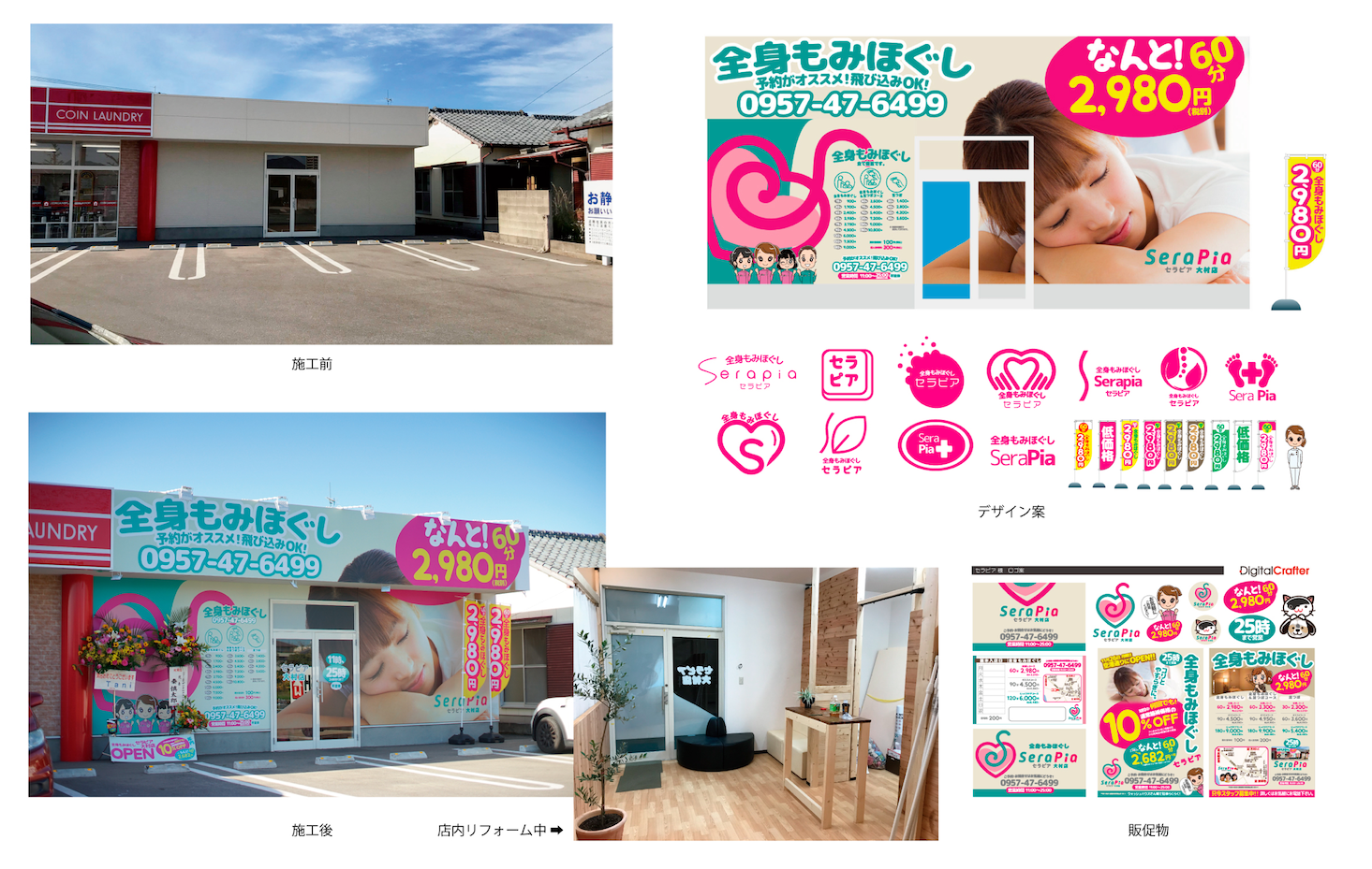マッサージのお店です。入口立体ロゴ。アクリルに塗装して製作。