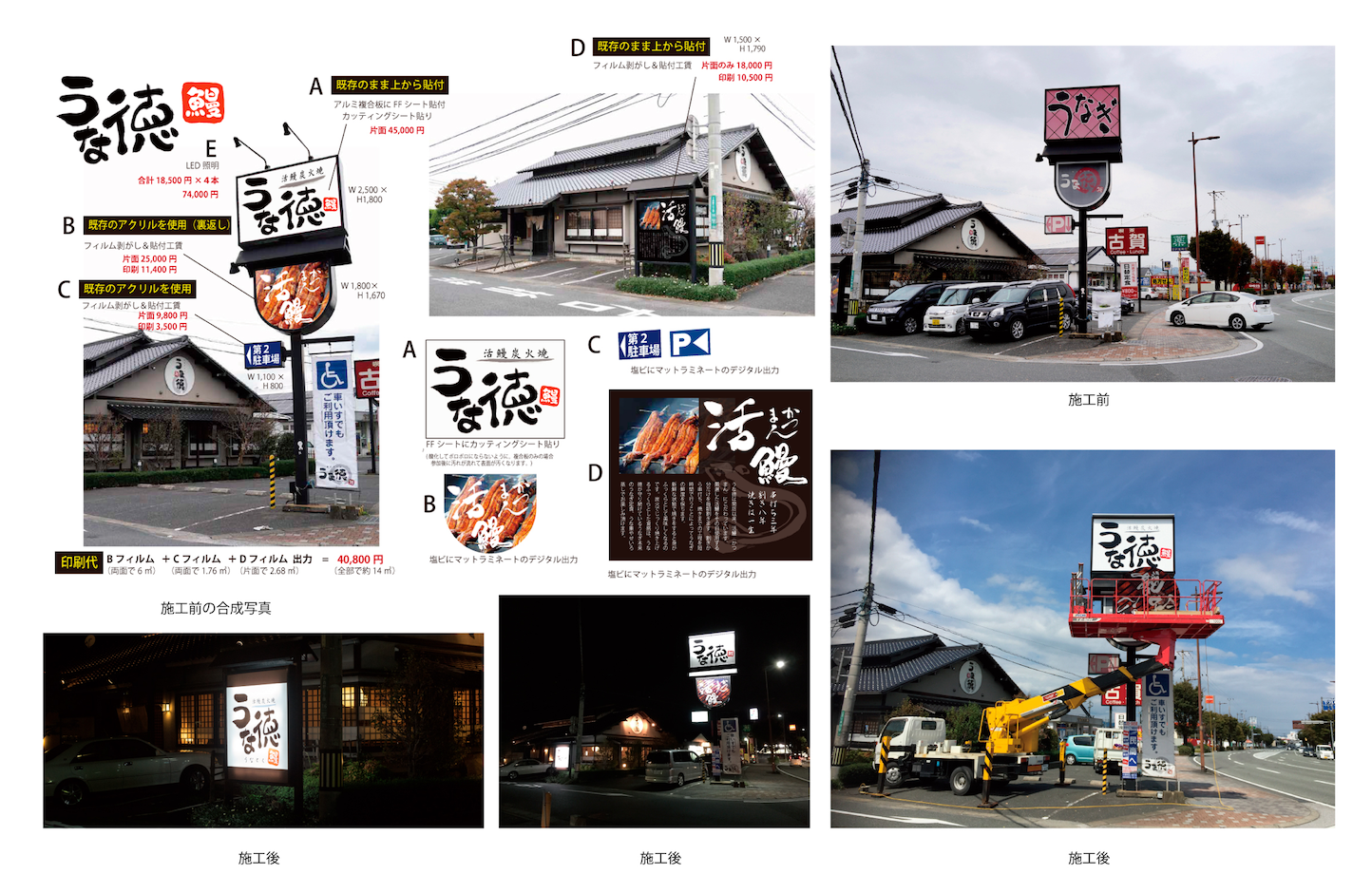 安価で腕の良いスタッフの方が多いお店です。全面アルミ複合板にフルカラー印刷。