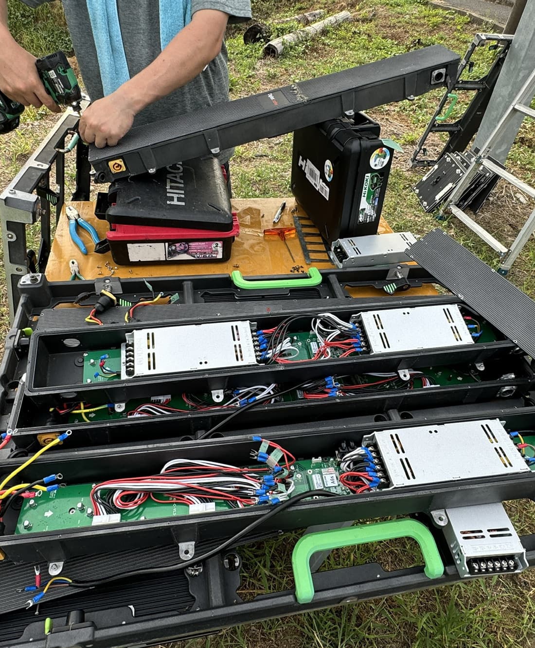 LEDビジョンの電源は、主に最近増えた密閉式でファンレスタイプに起こるトラブルです。(ファン付きタイプでもたまに発生します)デジタルクラフターでは、電源も各タイプ別にストックしており、省電力タイプ用から標準型用まですぐに部品交換対応できる体制を整えています。出張での交換もその場で対応します。