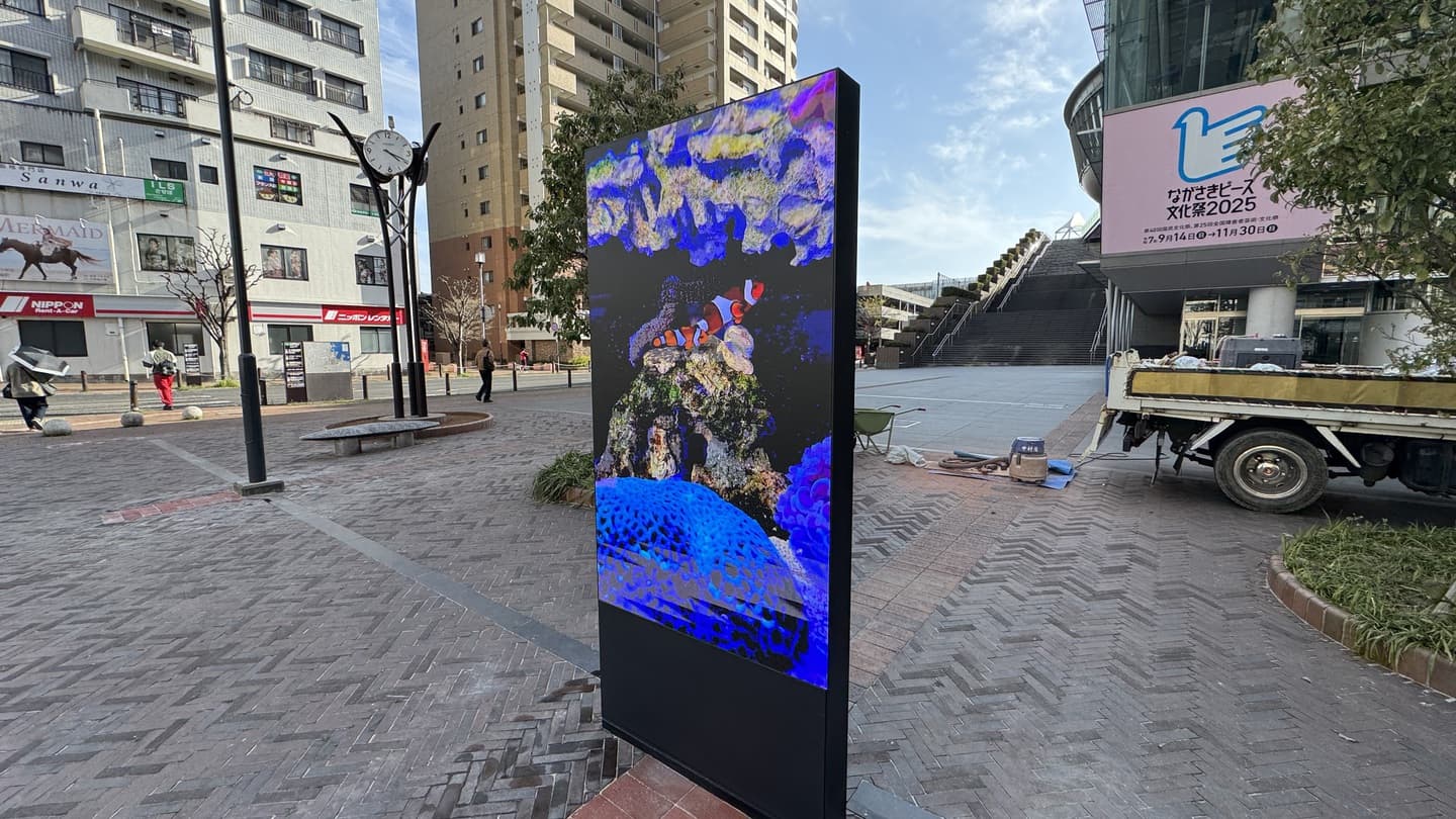 2025年最新のLEDビジョンです。屋外用として最高解像度 P1.25、しかもBlackLEDを使用し、さらにGOBで保護された2025年最新のモジュールで全部入りの高級機になります。屋外用でありながら、屋内用に匹敵する高解像度で、日本国内で当社が初導入する第2世代のLEDビジョンになります。耐久性が高く、商業ビル等の広告に最適です。画面が保護されたGOBタイプであるため、ドット欠けが極めて少なく、人の通り道に掲示するLEDビジョンとして最適解の製品になります。フロントメンテナンスが可能な為、壁面の設置、大規模な大型ビジョンにも最適です。