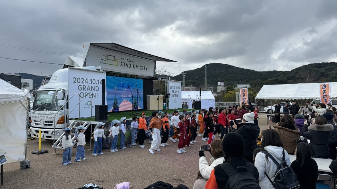 写真は諫早市で行われた花火大会の日に同時に行われたイベントです。トラックを横付けするだけでステージが出来上がるため、移動式ステージカーは様々な利用方法で活用されました。
