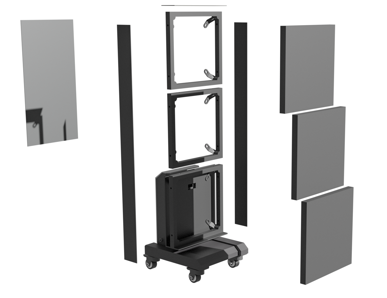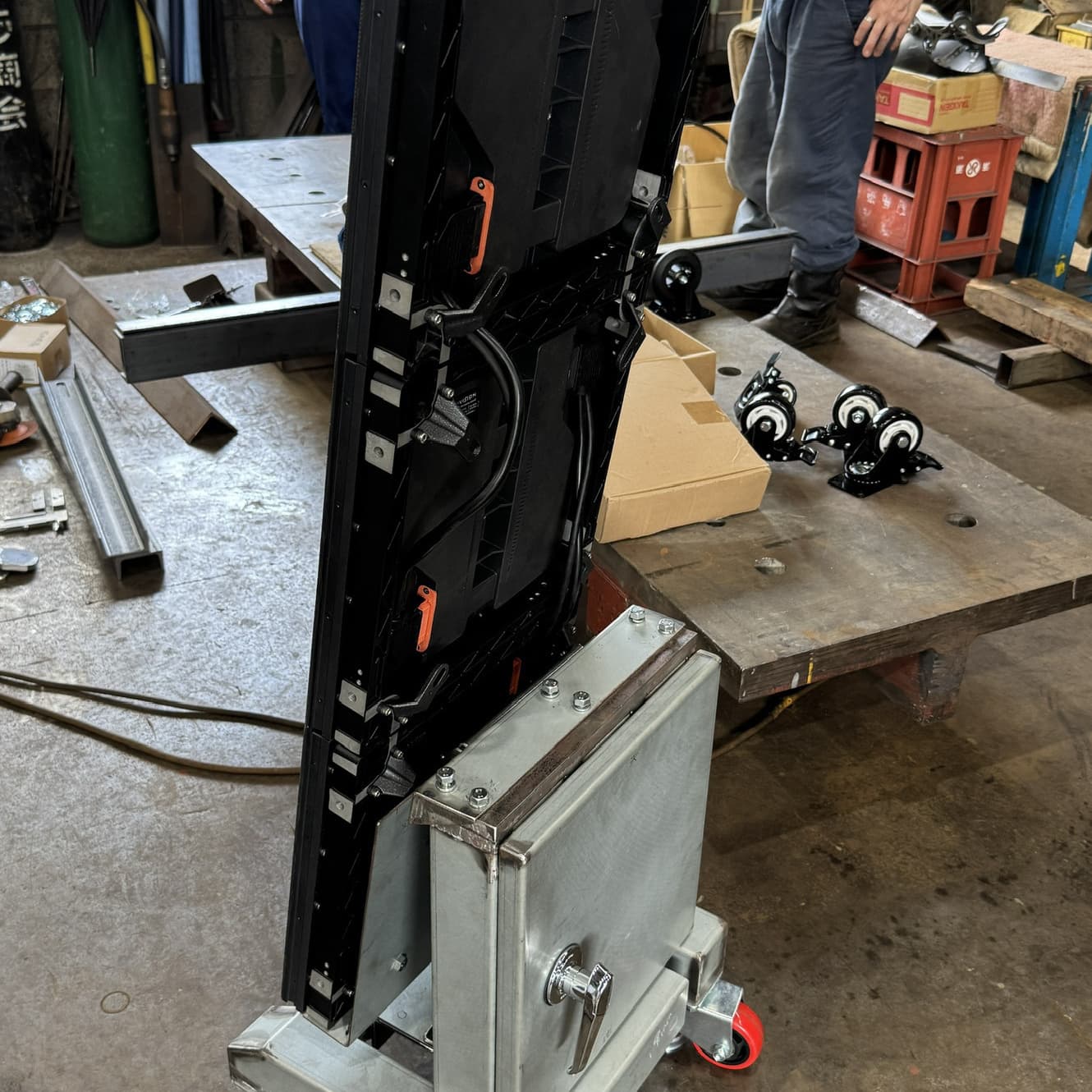 当社では、長く使用して頂く事を目的に、共通フレームを設計、製造しました。筐体のフレームは、320mm×320mmのキャビネットを設置出来る様になっており、将来、キャビネットがアップグレードされれば、キャビネットを交換するだけで、高解像、GOB、COB、 BlackLEDへアップグレード出来る画期的な製品です。