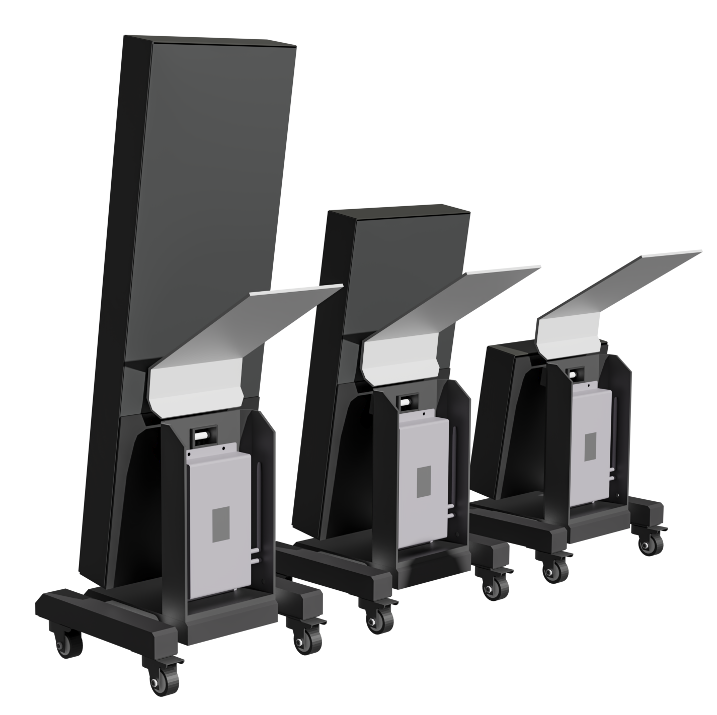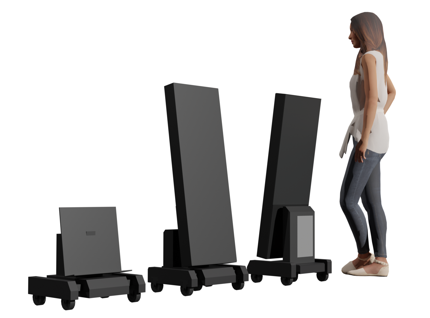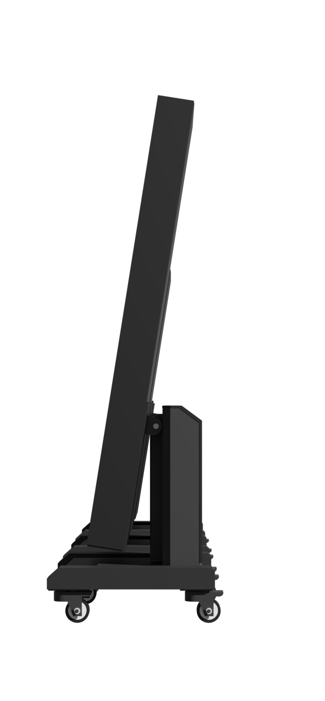 筐体のキャスター部は横方向にスライド出来ます。これにより、大画面にした時などはより安定した設置が可能です。デザイン性を実用性を実現しています。